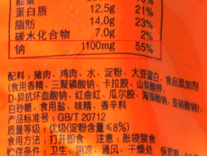 (某品牌火腿腸的配料表)