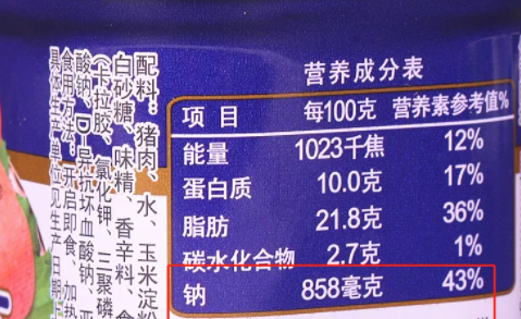 看看鈉含量,那都是賊高啊,要比新鮮豬肉要高出30多倍!
